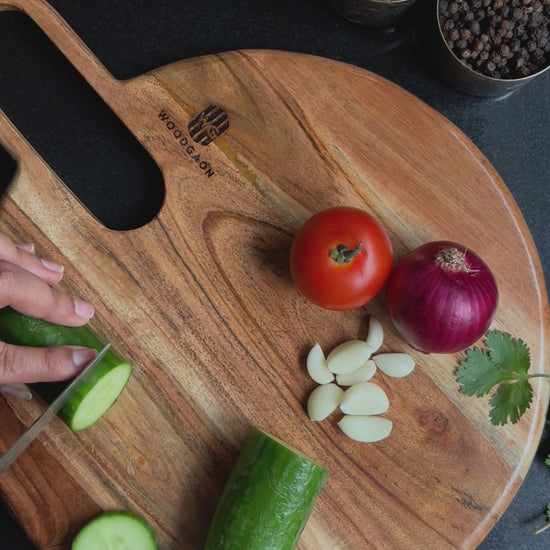 Elevate your kitchen with the timeless beauty and durability of our Acacia Chopping Board. Designed for both functionality and aesthetics, this reversible cutting board offers a smooth and durable surface perfect for chopping, slicing, and serving. Whether you're prepping ingredients, chopping herbs, or serving a delicious cheese platter, this board is designed to impress.